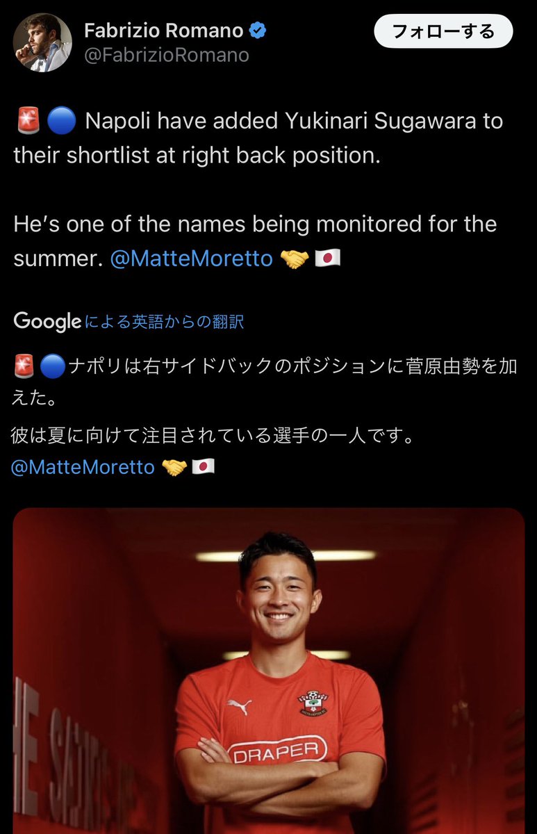 @koota_mhh_46ナポリが! セインツの菅原由勢を 狙っているだと?! x.com/FabrizioRomano…